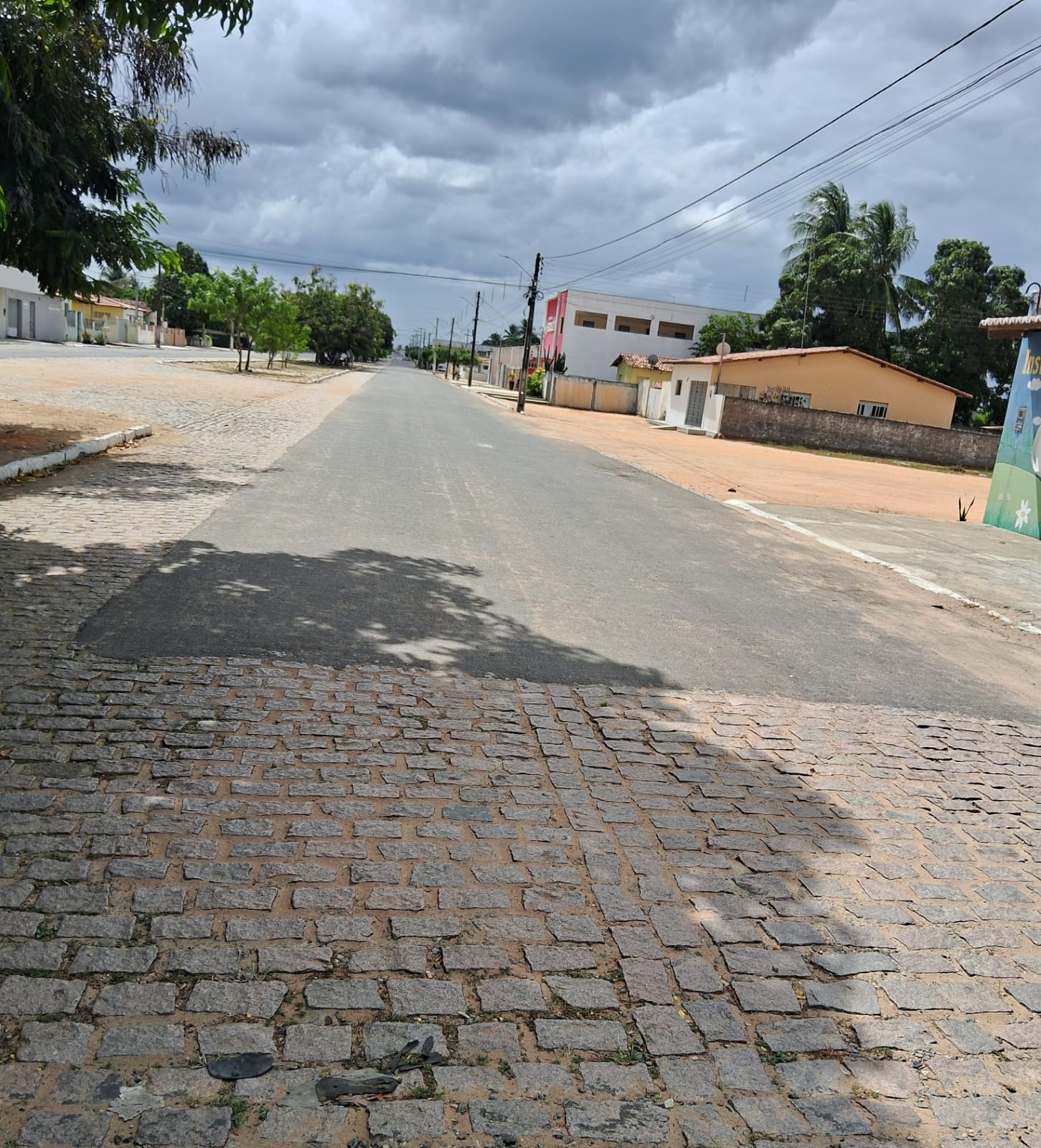 Asfalto da avenida principal de Poço Branco segue pela metade .