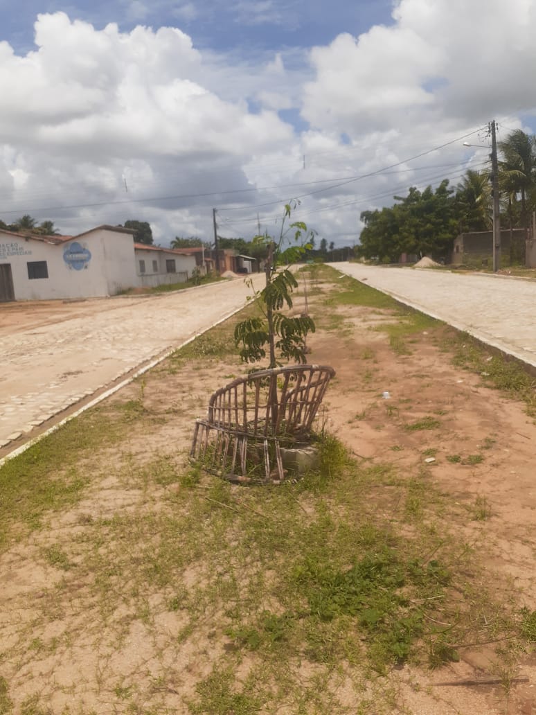 Plantaram umas mudas de árvores e ficaram de colocar as telas e nada .