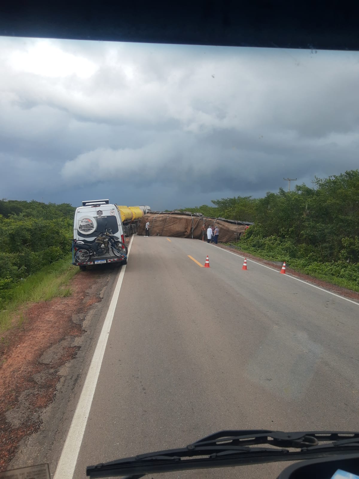 Motoristas que estejam trafegando na BR 406 , terão que estar com com atenção redobradas nesse exato momento , devido ao tombamento de uma Carreta na BR 406 , sentido Natal Baixa do Meio , nas imediações do Ginásio de Esporte .