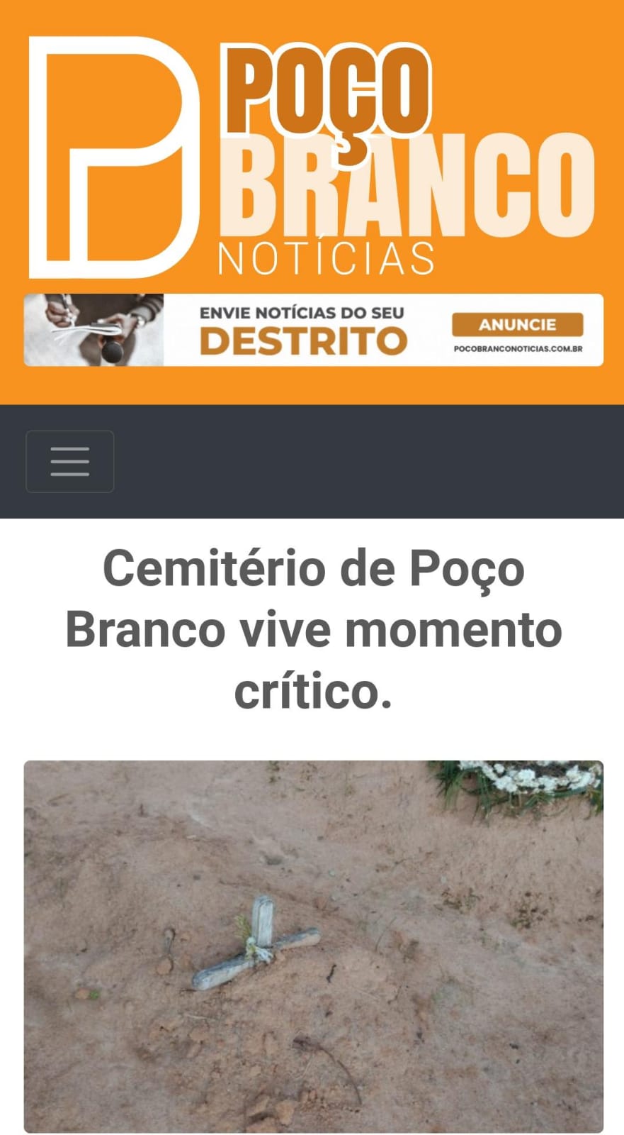 Vale salientar que ultimamente o cidadão de Poço Branco que vinha a óbito, estava sendo sepultado de forma irregular na passarela do Cemitério, causando revolta e tristeza dupla nos familiares enlutados .