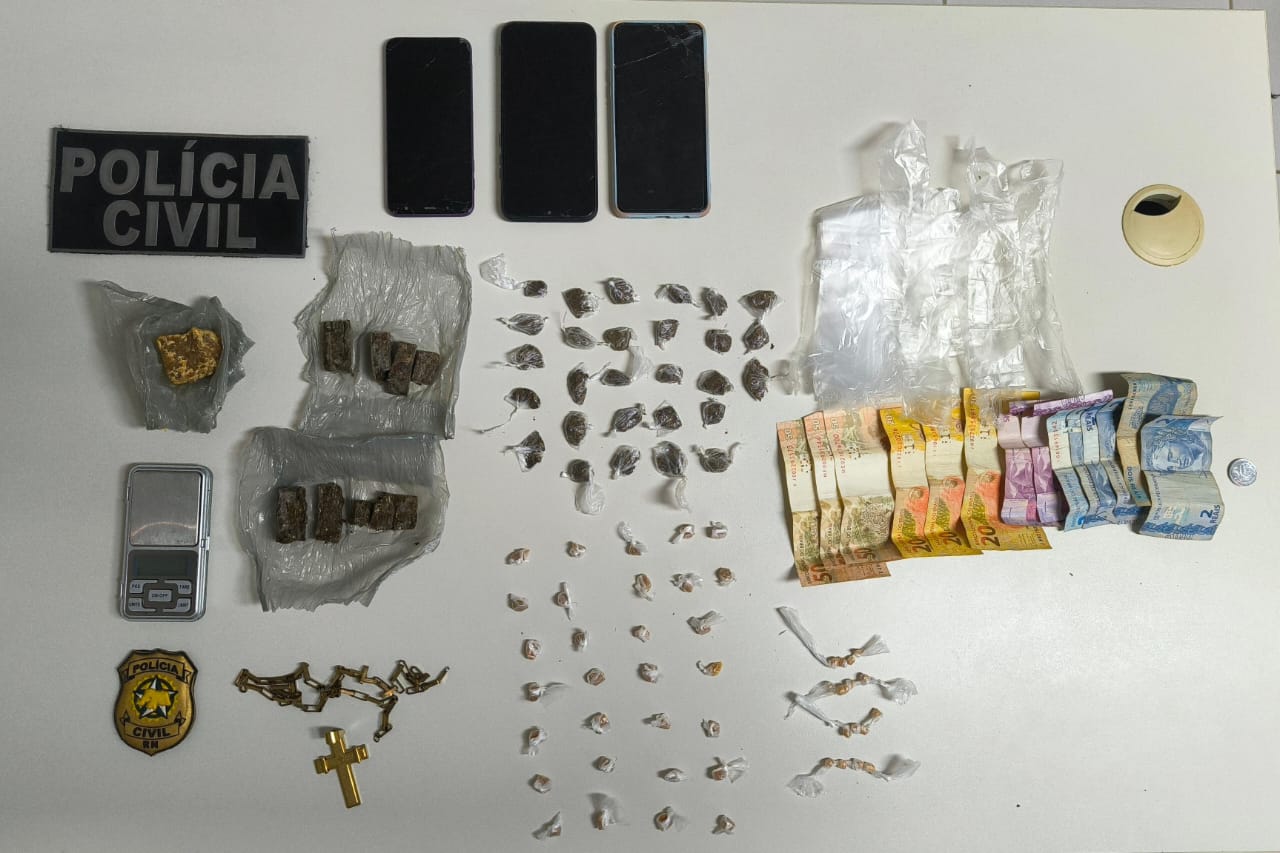 Durante as diligências, foram encontradas drogas do tipo maconha e crack, balança de precisão e sacos plásticos para embalar os entorpecentes, além de dinheiro fracionado. O indivíduo investigado anteriormente foi preso por associação ao tráfico de drogas.