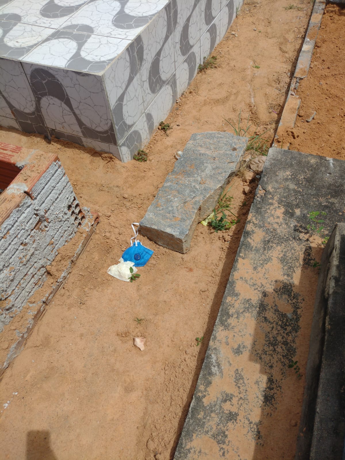 "Em relação a atual situação do cemitério, a cidadã que nos enviou as fotos na manhã de ontem , teme que as crianças derrepente possam pegar nesse material utilizado para proteger o coveiro de possíveis bactérias ao enterrarem um defunto .