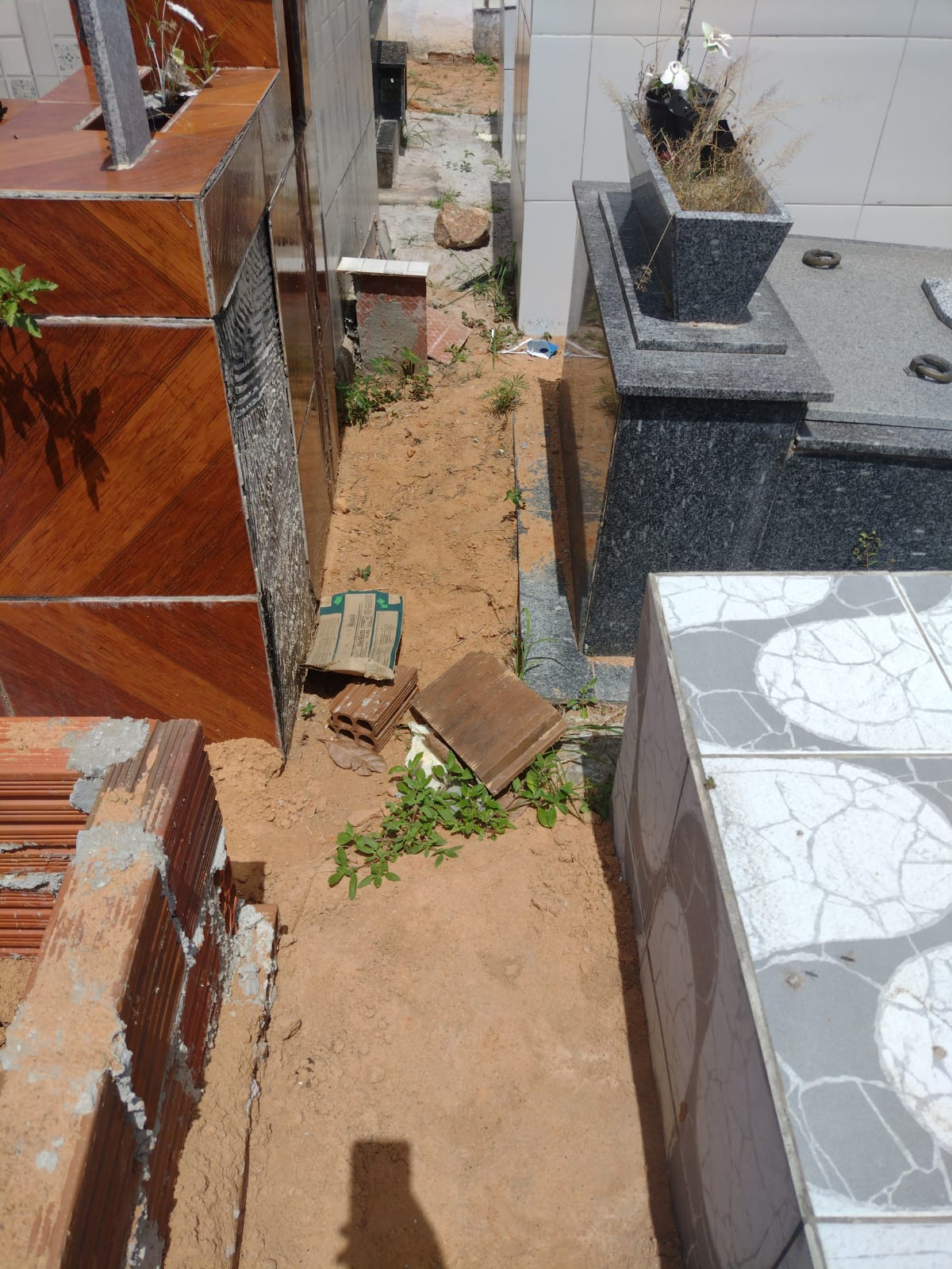 Já a obra do novo cemitério do município se encontra totalmente parada , apenas o meio fio e os postes foram colocados e pelas imagens percebemos que os postes estão sendo colocados em locais errados , no meio da passarela o que vai obrigar no futuro o deslocamento das pessoas que estejam acompanhando o cortejo fúnebre até o túmulo , pelo fato do poste está empatando o trajeto normal das pessoas .
