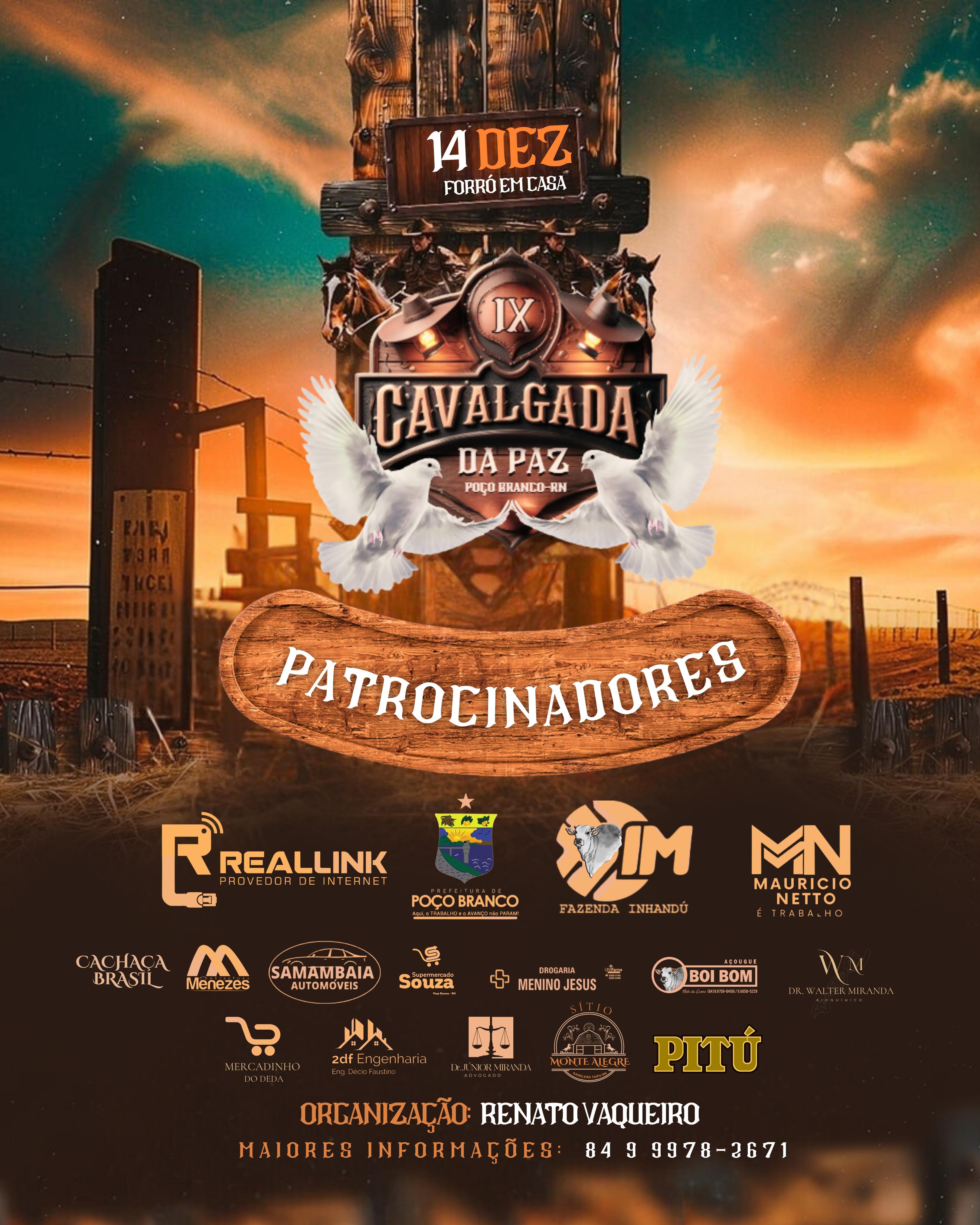 " Desde de já gostaríamos de agradecer a todos os nossos Patrocinadores , pela confiança e apoio em mãos uma edição da Cavalgada da Paz, assinala Renato "