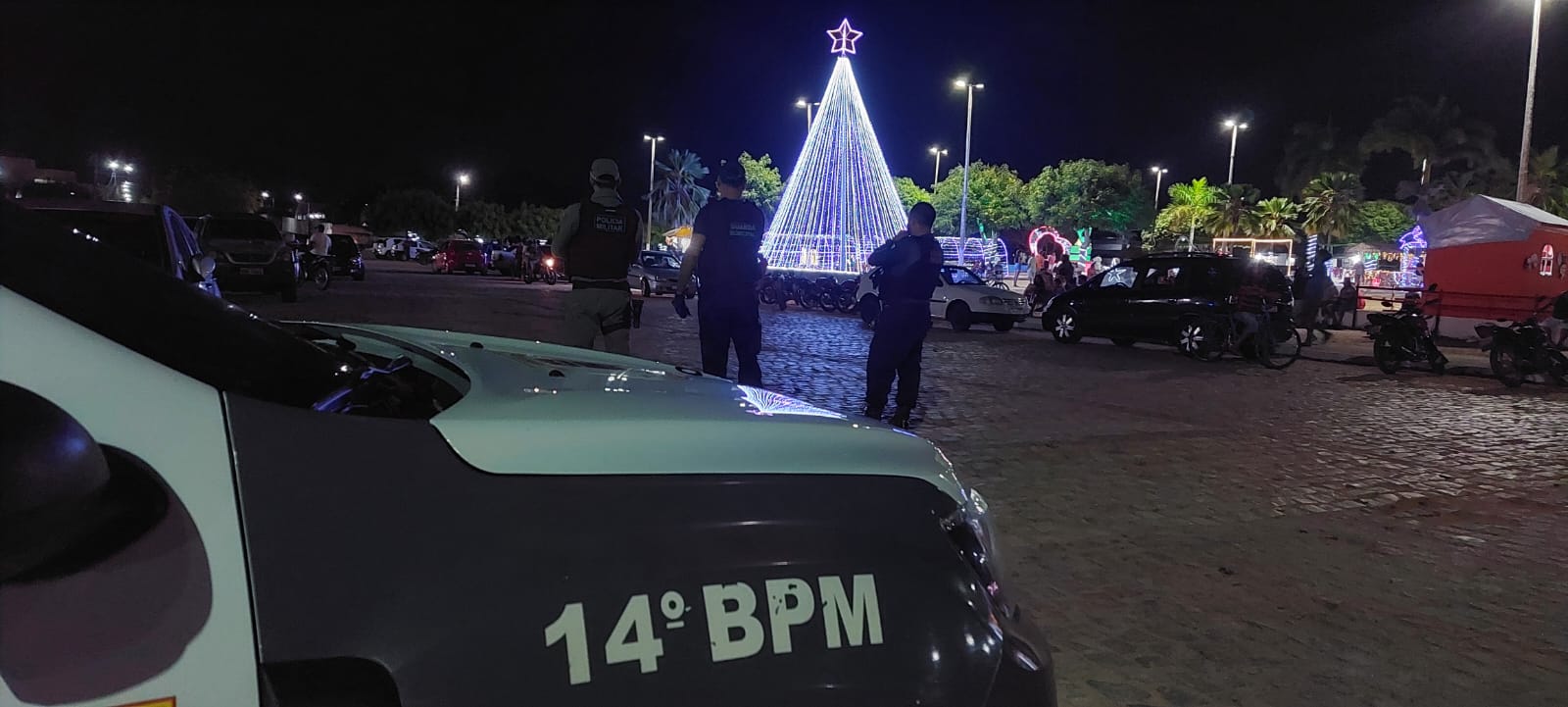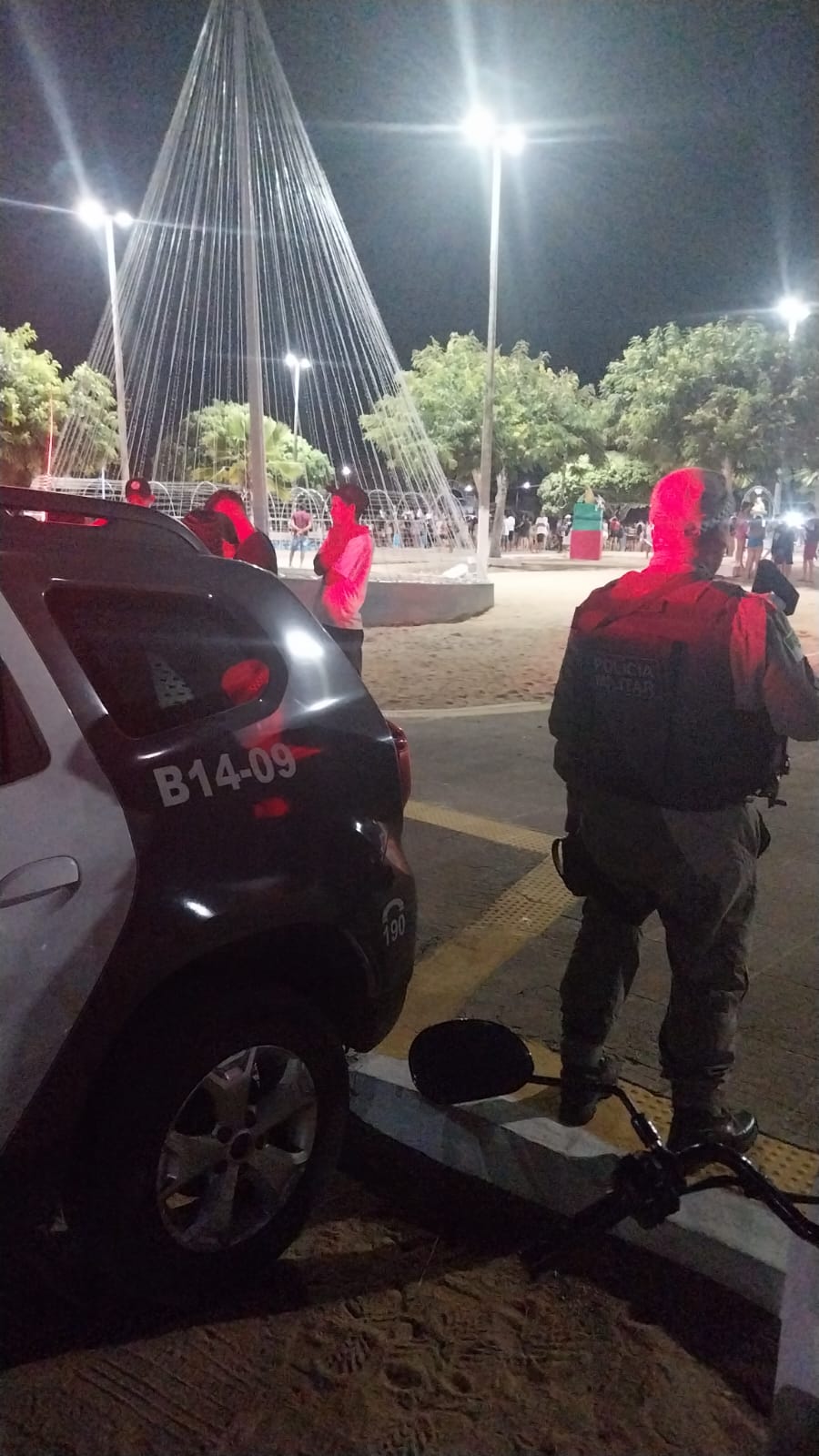 Com rondas ostensivas em pontos estratégicos da cidade , a VTR B14-09 , montou sua base no evento Natal Encantado , na última Sexta (13) , garantindo a segurança dos munícipes, além do ponto base na Barragem .