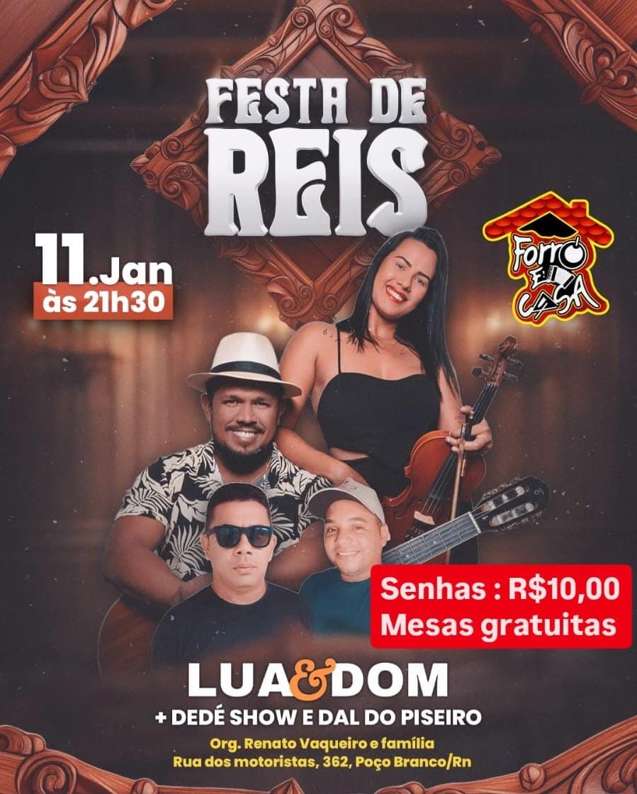 O casal de empresários Renato Vaqueiro e Mylene Mandú, abrem oficialmente a temporada de eventos e festas da casa de Show Forró em Casa , neste sábado (11) , a partir das 21:30 , com a realização da tradicional Festa de Reis de Poço Branco .