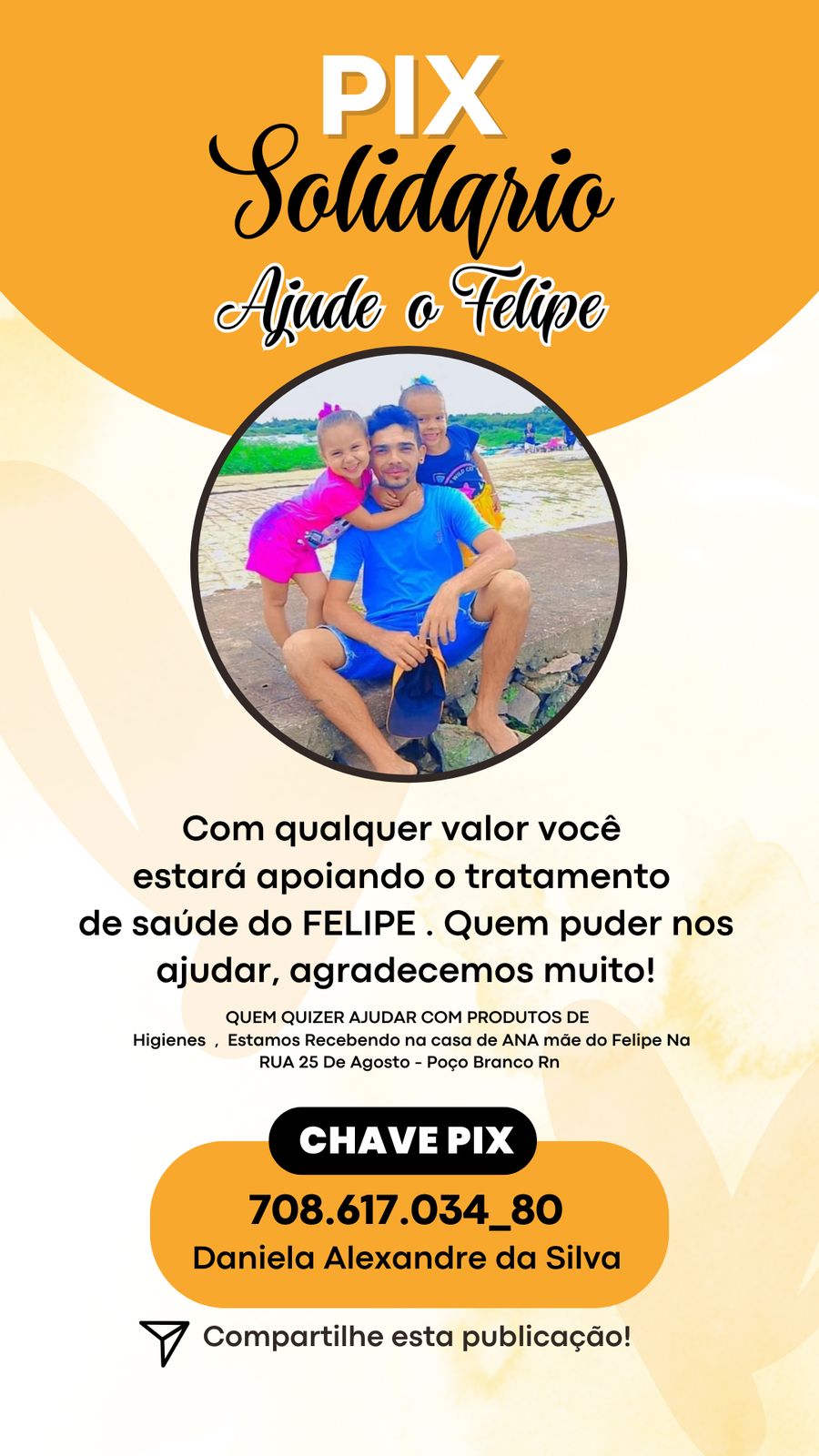 A família de Felipe, através de sua esposa Daniela Alexandre, lançou uma campanha solidária nas redes sociais , com o objetivo de PR vivenciar material de higiene pessoal está precisando da ajuda de todos no que diz respeito a material de higiene pessoal , através da chave Pix : 708.617.034-80.
